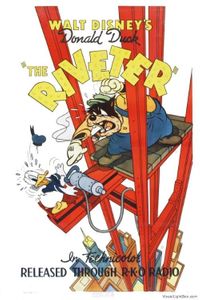 Dodgy construction foreman Pegleg Pete has just fired his riveter. Donald is in need of a job, so he pretends to be experienced and gets it, lacking any competitor. Even the open elevator on the every skyscraper is enough to make Donald sickeningly dizzy, high up the roofless top-floor without railings the work is spooky, but the boss keeps coming up to keep a close eye on him. The damned riveting machine has its own will and much more strength then any duck: it ends up dragging the duck on a wild ride. Greenhorn Donald must also 'serve' lunch, an equilibrium nightmare while the riveting colleagues work their seismic vibes, till short-tempered Pete...