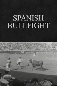 With a crowded arena in the background, a stationary camera records a bull charging a picador astride his horse. An attendant on foot throws stones at the rump of the horse to get it to move. Various toreadors run past the bull to try to get him to charge or at least run about.