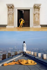 Second Breath presents a portrait of Berlin’s long and intractable history through Holly Zausner’s dramaturgy. Inspired by her time living and working in the city in the 1990s, Zausner created a series of three outsized figures made from rubber silicon and knitted material. This film features Zausner interacting with these figures in a sequence filmed at key landmarks in the city, including the Potsdamer Platz, Neue Nationalgalerie, Spree River, and the now-demolished Palast der Republik. In every scene, we see the heft of the figures counteracting her manoeuvres of them, turning the idea of the body as a metaphor for the weight of history from abstraction to physical reality.